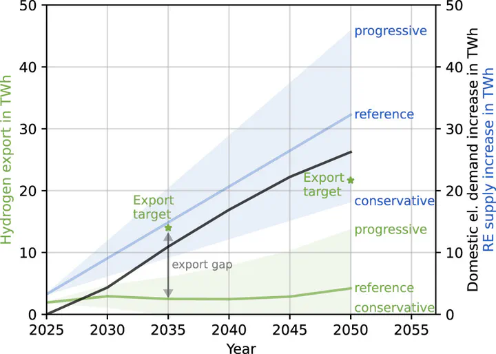 The growing demand for green hydrogen necessitates a rapid scale-up of production and exports to meet decarbonization targets globally. However, current ramp-up efforts remain insufficient, calling for policies that unlock the potential of hydrogen as a low-carbon energy carrier. A key lever is the offtaker regulation, which impacts the pace and sustainability of export projects. This study investigates minimum renewable share requirements for hydrogen exports in countries with high renewable electricity shares. Using New Zealand as a case study, we develop a fully sector-coupled capacity expansion and dispatch model, integrating hydrogen and electricity network planning based on PyPSA-Earth. The model optimizes New Zealand’s energy system under varying export scenarios, renewable electricity shares, and resulting system impacts. We find that domestic electricity demand and renewable expansion rates dominate long-term outcomes, while progressive regulation enables short-term hydrogen and Power-to-X exports. Relaxing the renewable threshold from 80% to 60% triples export volumes from 2.5 TWh to 8.2 TWh by 2030. We propose a two-stage requirement; an initially progressive threshold to attract investment with low consequential emissions, followed by stricter regulation to prevent high emissions, rising domestic electricity prices, and declining hydrogen competitiveness. This framework, demonstrated for New Zealand, can guide hydrogen-exporting countries worldwide.